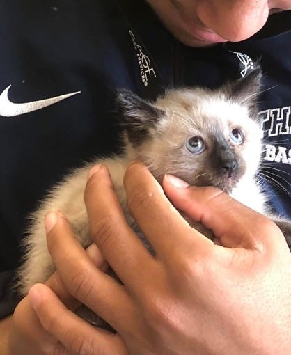 It was Drew, a Senior. He was more hyped than he even usually was. “Mrs. P! I’m so sorry to interrupt, but we need help and I didn’t know who to go to. I thought you could help. We just found a kitten, abandoned in the Whole Foods parking lot. What do we do? I left the guys there with the kitten and said I’d come ask you for help.”